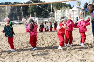 1月272015さくら日記 園児達を歓迎、また、温かく見守っているかのような豪快に輝くきれいな日の出が見られました。早朝午前6時30分頃、早起きしたあと、ホテル前の砂浜でグループ毎に朝の散歩や貝殻取り、ラジオ体操…朝食後には、子ども達のもうひとつのお楽しみ~運動会「リレー、綱引き、パン食い競争、※相撲(4)でアップしています。」を行いました。 Category: さくら日記2015年1月27日Post navigationPreviousPrevious post:‘2014.12. 3日(木)~ 4日(金) 卒 園 旅 行 「年長組」(4)NextNext post:‘2014.12. 3日(木)~4日(金) 卒 園 旅 行 「年長組」(2)
