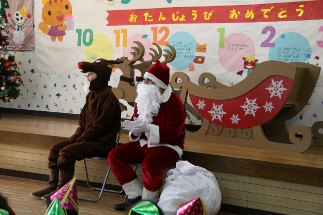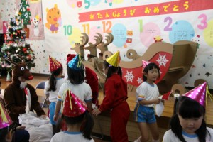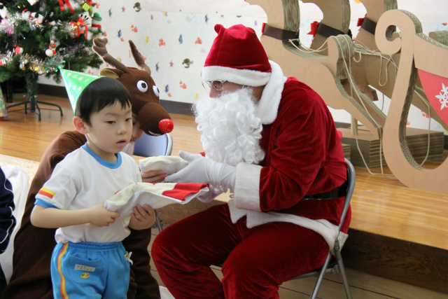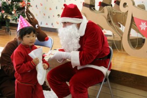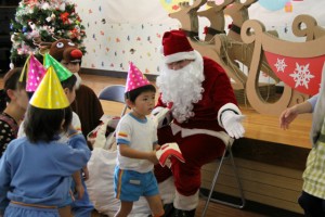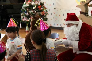 4月162015イベント情報さくら日記サンンタさんがやってきた~子ども達が、とても楽しみに待っていたサンタさんからのプレゼントを一人ひとり手渡しでもらい、満面の笑み?初めてのお友達は、おっかなびっくり?子ども達の目や心には、どんなことが印象として残ったのでしょうか。楽しい夢のあるイベントを来年度も行っていきたいと思います。「初お目見えのトナカイやソリもご覧下さい) Categories: イベント情報, さくら日記2015年4月16日Post navigationPreviousPrevious post:‘2014.12. 3日(木)~4日(金) 卒 園 旅 行 「年長組」(1)NextNext post:‘2014.12.13(土) 作 品 展
