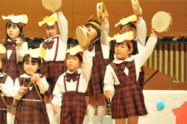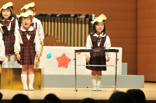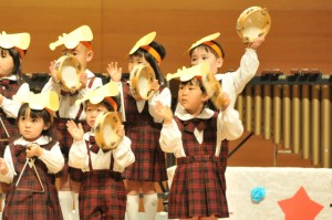 一年間の集大成として、また、子ども達の心身共に大きく成長した姿を発表する場として「おゆうぎ・音楽発表会」を行いました。歌い、踊る姿の中に、子ども達の様々な表情を垣間見ることができました。我が子の成長に~感動、興奮~思わず涙したご父兄の皆様も…江北さくら幼稚園らしいダイナミックな演技、音感豊かな演奏の数々(動画で見ることができないのでとても残念ですが)どうぞご覧下さい。1.おゆうぎ「スシ食いねェ」「トッキュウジャー」「おいでシャンプー」「ミニ・オ!・ミニー」2.合奏「どんないろがすき」「おもちゃのチャチャチャ」です。