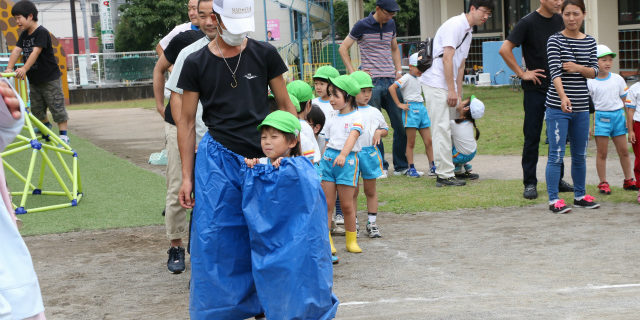 7月12015イベント情報さくら日記 年長組は、伸び伸び活動できる広い園庭で、お父様方とデカパンレースやお友達同士、お父様同士でしっぽ取り等を行いました。お父様方は、笑顔笑顔の中にも真剣勝負?お友達との触れ合いは、さすがにとても嬉しそう~そういった様子をぜひ、ご覧下さい。お父様方、休日にもかかわらず、当園行事にご参加、ご協力いただき、誠に有難うございました。2学期の運動会等もございます。お子様のために、これからも、積極的なご協力をどうぞ宜しくお願い致します。 Categories: イベント情報, さくら日記2015年7月1日Post navigationPreviousPrevious post:’15. 6.14日(日) 保 護 者 参 観 日 「年中、少組」NextNext post:’15. 6.16日(火)「30メートル走記録会(年中組)」