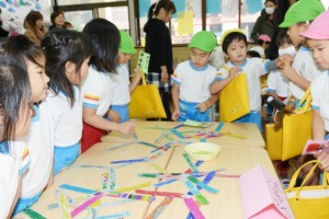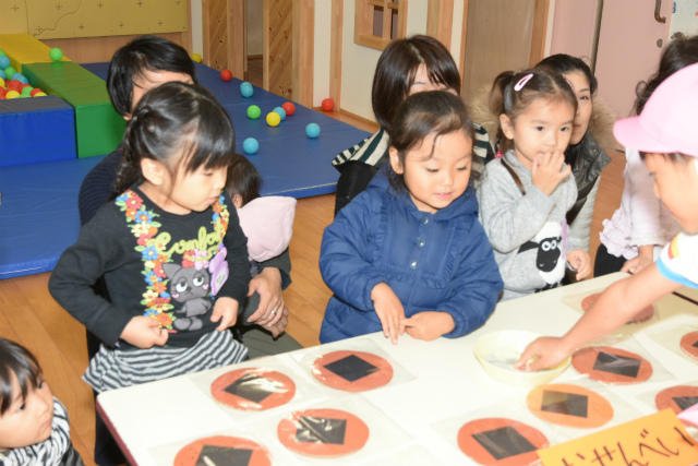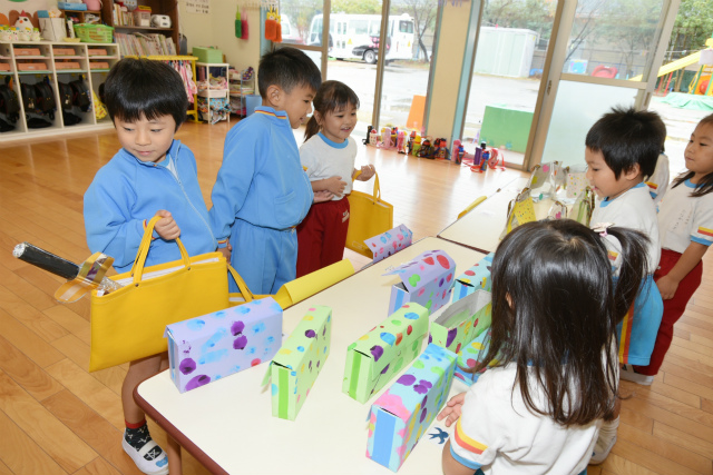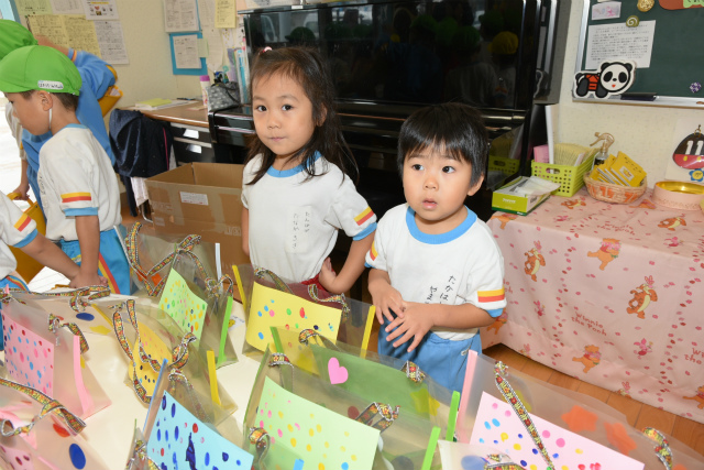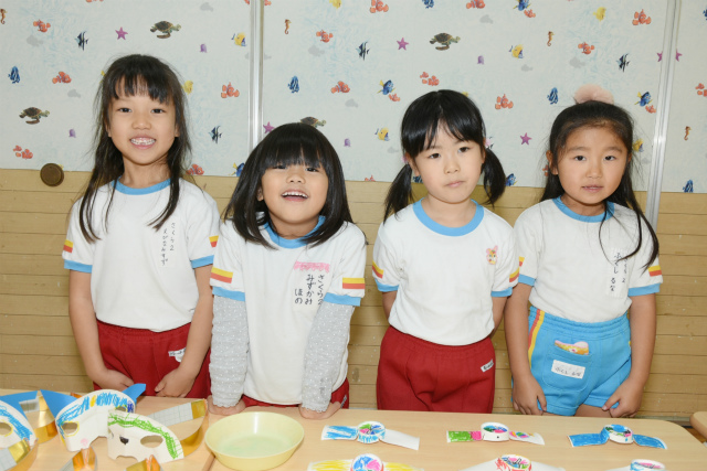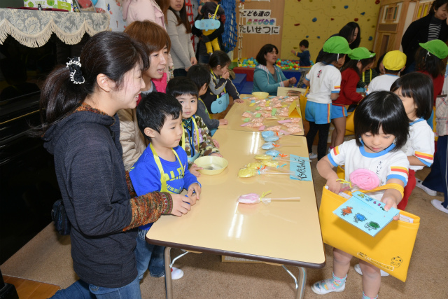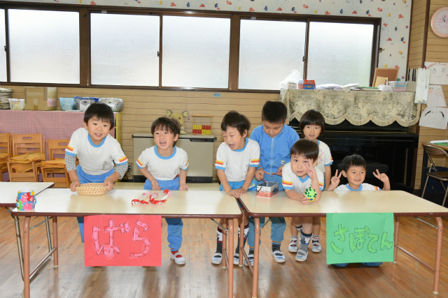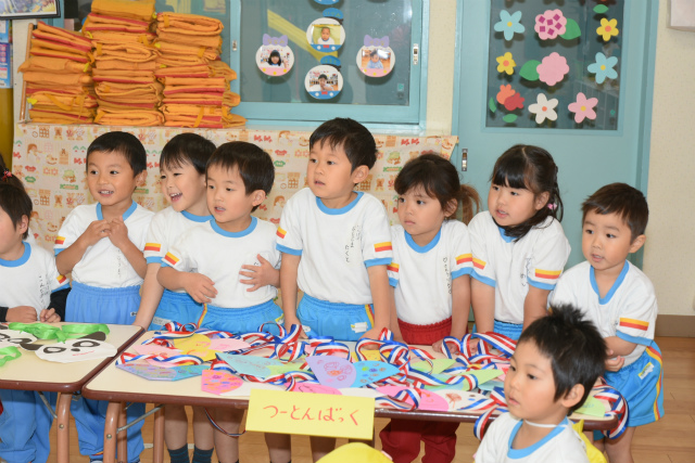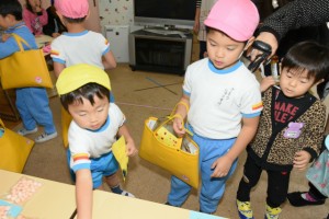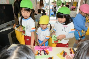 1月62016イベント情報さくら日記年一回の学年を越えたお楽しみ会、疑似体験「物の売り買い(いらっしゃい~いらっしゃい。これください。ありがとうございます)」は、大人の世界に一歩足を踏み入れられたようなうれし恥ずかし 自分のほしいの物を手に入れることができる喜び等幼児期にとっての貴重な体験、経験ができたと思いますが、如何でしょう。 Categories: イベント情報, さくら日記2016年1月6日Post navigationPreviousPrevious post:‘2015.11. 7(土) 移動動物園(2)午後の部「年中・長組」NextNext post:‘2015.11.29(日) お餅つき会「全園児」 次回は、年長組の卒園旅行12.3/4[鴨川シーワールド 砂場での相撲、パン食い競争等]の様子をアップします。