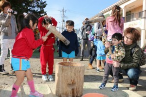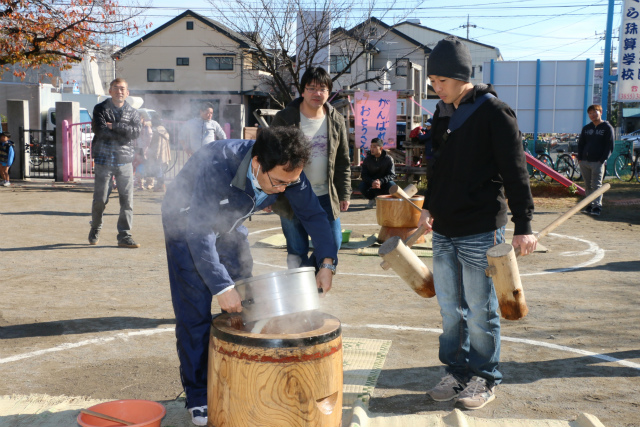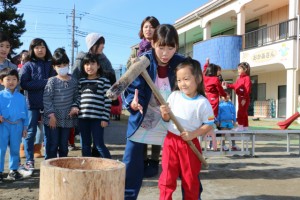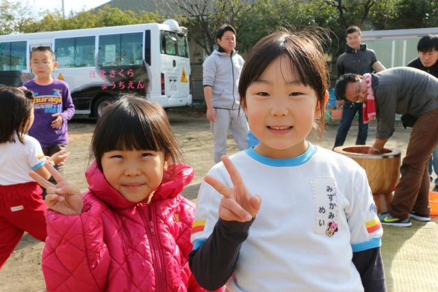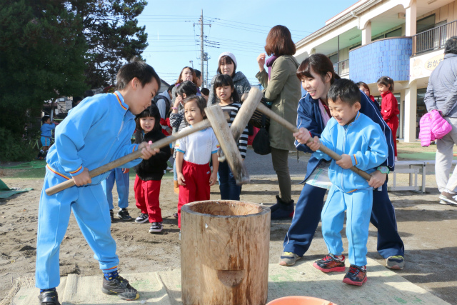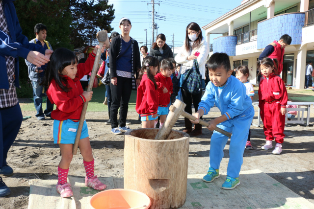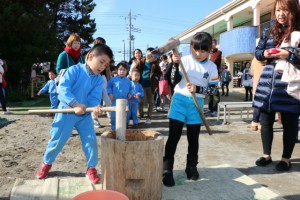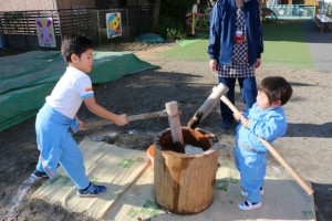 1月62016イベント情報さくら日記風もなく穏やかな日和の中、スペシャルボランティア委員のお父様方やお母様方のご協力のもと、お餅つき会を行うことが出来ました。搗き立てのお餅の味は、格別でした。スペシャルボランティア委員の皆様、お忙しい中、お手伝い、ご協力いただき、本当にありがとうございました。次年度もどうぞ宜しくお願い致します。 Categories: イベント情報, さくら日記2016年1月6日Post navigationPreviousPrevious post:‘2015.11.26(木) お店屋さんごっこ その他 「全園児(年長組のみ自由参観)・さくらキッズクラブ」NextNext post:‘2015.12. 3(木)~4(金) 卒園旅行「鴨川シーワールド(年長組)」(1)