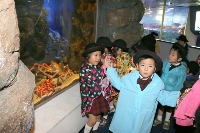 1月72016イベント情報さくら日記行ってきま~す!さくら幼稚園恒例の卒園旅行に行ってきました。一泊二日の最初の日は、鴨川シーワールドへ行き、シャチやイルカ、アシカ等の海の動物達のショーを楽しみました。シャチやイルカの大ジャンプに一喜一憂、また、水族館でも、今まで見たことのない大きなカニやウミガメ、マンボウ、エイなど見てとても驚いていました。その他たくさんの海の動物を見ることができみな大喜び、嬉しそうな表情をしていました。 Categories: イベント情報, さくら日記2016年1月7日Post navigationPreviousPrevious post:‘2015.11.29(日) お餅つき会「全園児」 次回は、年長組の卒園旅行12.3/4[鴨川シーワールド 砂場での相撲、パン食い競争等]の様子をアップします。NextNext post:‘2015.12. 3(木)~4(金) 卒園旅行「ホテルでの夕食その他」(2)