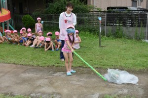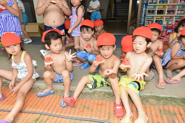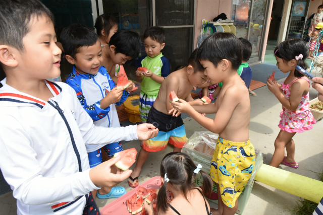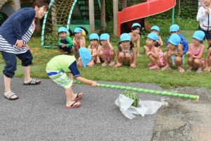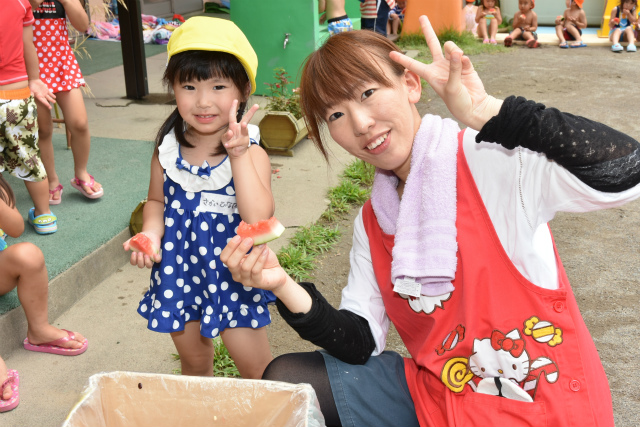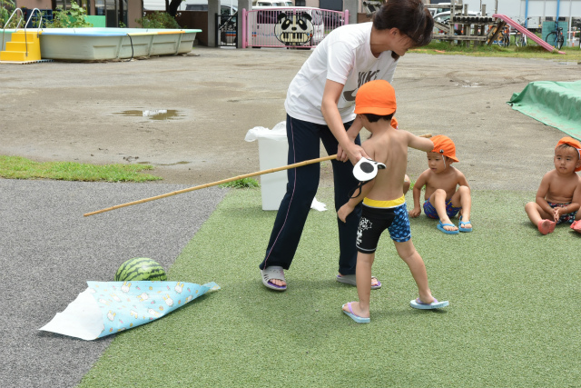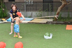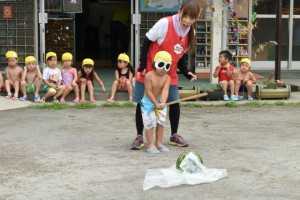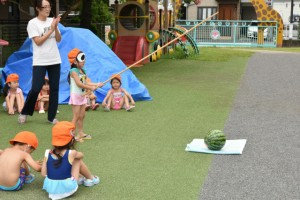 9月62016イベント情報さくら日記夏の風物詩…恒例となっている「すいか割り」を行いました。お楽しみは、それだけでなく~すいか(勿論食用)を食べ、一時の清涼剤になったことでしょう。 Categories: イベント情報, さくら日記2016年9月6日Post navigationPreviousPrevious post:‘2016. 7. 16(土)盆 踊 り NextNext post:‘2016. 7.21 プ ー ル ・ウォータスライダー 遊 び 「夏期保育(前期)」