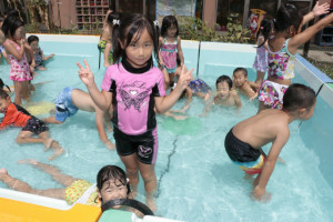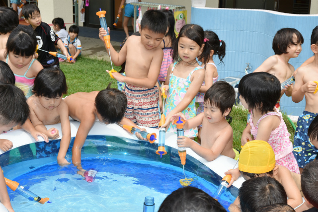 9月152016さくら日記夏期保育の一番人気、大の楽しみは、何と言ってもプール、水遊びですね。中でも、ウォータースライダーは、すべりながら、水しぶき、涼を感じ、さらにスポーツ感覚も味わえる~何度でも何度でもチャレンジしたい子ども達にとっての最高の水遊びとなっています。 Category: さくら日記2016年9月15日Post navigationPreviousPrevious post:‘2016. 7.20(水)す い か わ り 「夏期保育(前期)」NextNext post:‘2016. 8月 シャボン玉・水遊び「夏期保育(後期)」