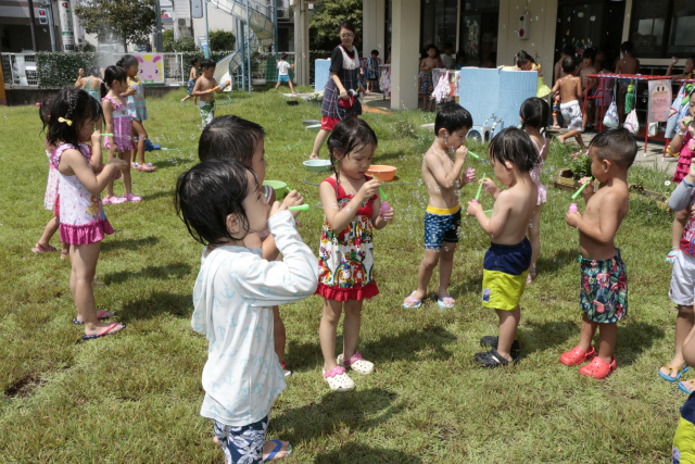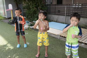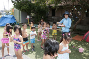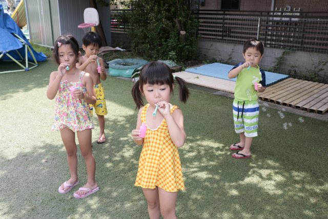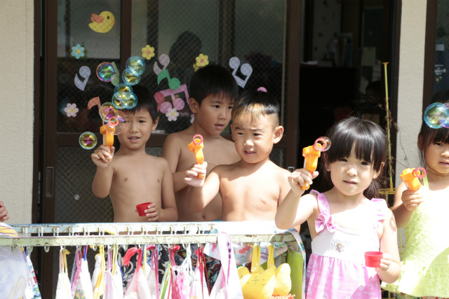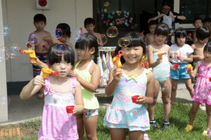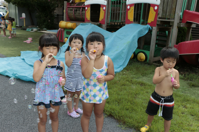 9月212016さくら日記シャボン玉とんだ!屋根までとんだ!屋根までとんで!こわれてにげた!1922年頃出来た童謡らしいですが、90年経った今でも多くの人に親しまれている愛唱歌と共に大きくできたシャボン玉、小さくてもぐんぐん遠く、空高く舞い上がっていく~夢、願いを乗せて~大人であっても童心に帰ることができるシャボン玉遊び~今も昔もこれからもですね。 Category: さくら日記2016年9月21日Post navigationPreviousPrevious post:‘2016. 7.21 プ ー ル ・ウォータスライダー 遊 び 「夏期保育(前期)」NextNext post:‘2016. 9. 3(土)小学校との交流演奏会