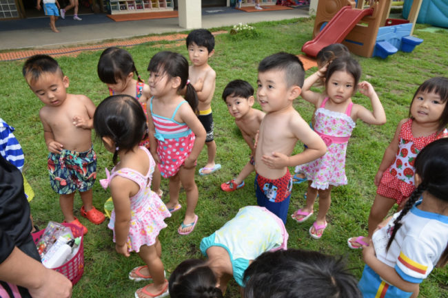 夏期保育の一番人気、大の楽しみは、何と言ってもプール、水遊びですね。中でも、ウォータースライダーは、すべりながら、水しぶき、涼を感じ、さらにスポーツ感覚も味わえる~何度でも何度でもチャレンジしたい子ども達にとっての最高の…