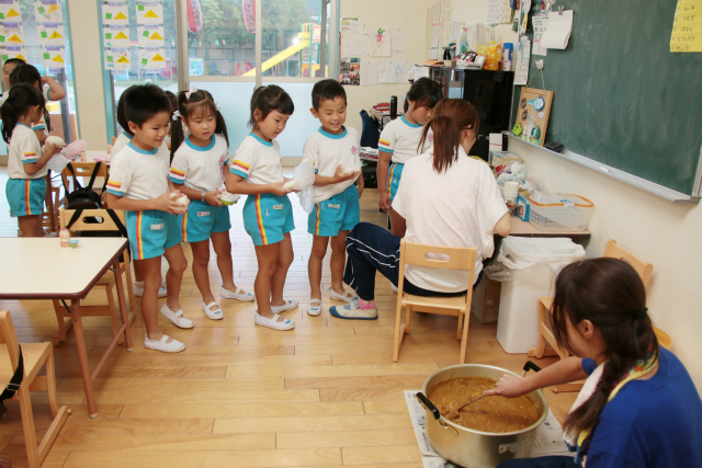 みんなで一緒に「食事をする(朝夕)」「花火を見る」「キャンプファィアーで踊る」「アニメを見る」「就寝」=幼少の頃に親元から離れ、生活する=お泊り保育は、例え、一泊でも、お友達同志で寝起きを共に、一緒に活動することは、やが…