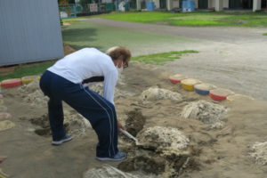 ◎ 砂場の砂【抗菌砂】150kg(15㎏10袋)を入れました。※ 写真参照