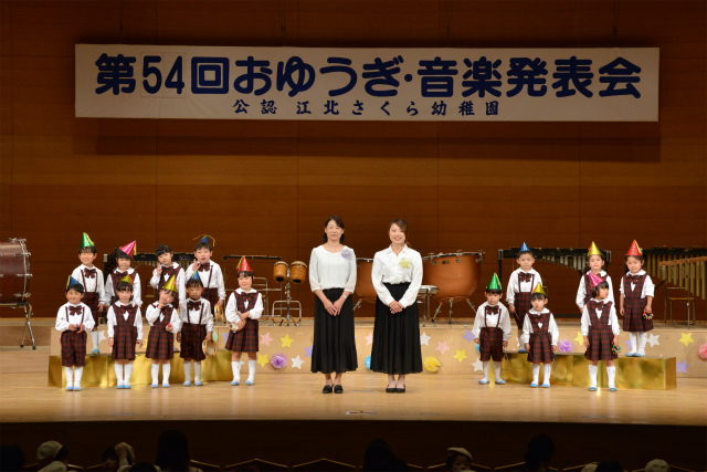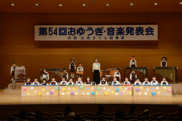 さくら1組と同じ年長組のさくら2組のお友達も、ゆうぎ・合奏の練習を楽しみながら、今まで培ってきたありったけの力を見事に発揮し、素晴らしい演技・演奏を披露し幼稚園最後の行事を飾ってくれました。1・2組とも、これで最後と思う…