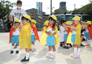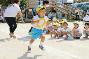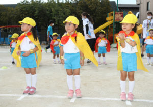 11月72020イベント情報さくら日記例年、近隣の小学校の校庭をお借りし行っていた運動会でしたが、今年度は、コロナ禍の影響で校庭での運動会は、出来なくなり、1.園庭2.学年別で行うことになりました。PART1では、初めての運動会だった年少組のお友達の①かけっこ②ゆうぎ等の様子をアップしましたので、どうぞご覧下さい。6月から入園したお友達、、、みんなで一緒に「おゆうぎやかけっこが出来る」ようになりました。本当に、あっという間に~大きな成長に~ Categories: イベント情報, さくら日記2020年11月7日Post navigationPreviousPrevious post:‘2020. 9. 5(土)お年寄りを敬う会 PART2「年長組(合奏)の写真&ご父兄との触れ合い&動画(全学年)」NextNext post:2020.10. 3(土) 運 動 会 PART2「年中組」