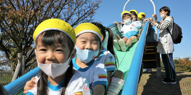 毎年、恒例の都市農業公園への園外保育を今年度も行うことが出来ました。1学期、園近くの怪獣公園へ行く予定が、休園要請があったため、行くことが出来ず、年少組のお友達は、入園後、初めての園外保育でした。青空が見える好天に恵まれた中、広々した緑の芝生の上で、先生やお友達と食事をしたり、遊んだり、また、なが~い高速の滑り台で滑ったりとお友達一人一人思い思いに園外保育を楽しんでいました。子どもは、遊ぶことが、遊べることが何よりの成長の源です。色々な行事が中止、制約を受ける中、園外保育を行うことが出来て、本当にありがたく、嬉しくなりました。