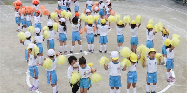 ◎運動発表会は、今年度も当園の園庭で「元気に明るく最後まで一生懸命」を目標に年少組は、日課のラジオ体操・おゆうぎ・かけっこ・全員リレー(②で掲載)を行いました。年少組は、日々の保育の積み重ねと担任、副担任の先生方みんなで力を合わせ、練習してきた成果を発表できるように取り組みました。‘最後まで一生懸命頑張る姿’“たくさんの元気を届けられた”大きな成長を実感していただけたと思います。保護者の皆様には、毎日の検温やマスクの着用、その他注意事項をお守りいただく等感染予防や等賞旗リボン作り等ボランティアとして、また、子ども達を勇気づけ励ましてくれた沢山の大きな拍手を頂戴、ご協力いただき、本当にありがとうございました。厚く御礼申し上げます。