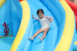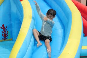 9月182024さくら日記例年、7月のプール開き~8月(夏休みを除く)後半の夏期においてプールや子ども達の一番人気の「ウォータースライダー」しんでいます。子ども達一人ひとり、1.怖がりながら(年少)2.思いっきりすべりスリルを楽しむ(年中組)の様子をどうぞご覧ください。この「ウォータースライダー」を設置出来、楽しめることが出来る幼稚園は、全国で~江北さくら幼稚園だけ~かも? Category: さくら日記2024年9月18日Post navigationPreviousPrevious post:’24. 9. 3(火)6日(金)30メートル走記録会NextNext post:’24.7月8月 『夏期保育』2. 江北さくら幼稚園ならでは~ 「ウォータースライダー(年長)」