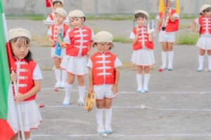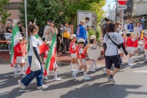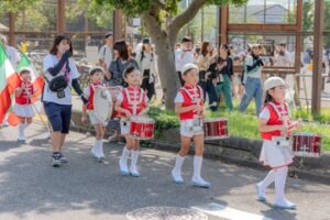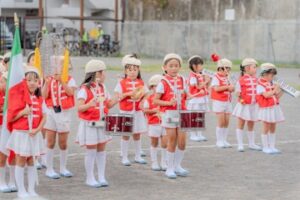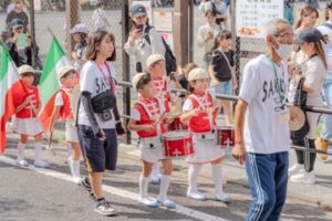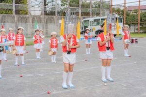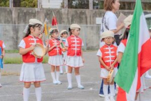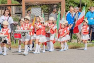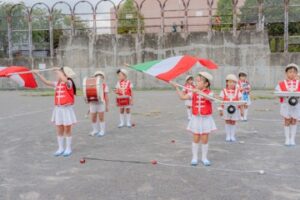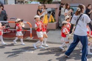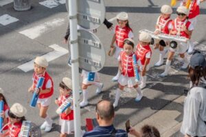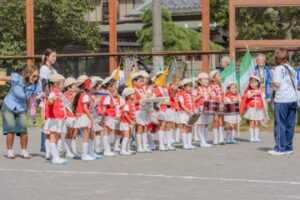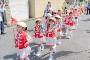 9月28日(日)今年度も江北さくら幼稚園の年長組の鼓笛隊が、鹿浜住区センター祭りに参加し、住区センター周辺をパレードしました。行進しながら演奏出来る江北さくら幼稚園ならではの鼓笛隊は、住区センターの主催者の皆様をはじめ、近隣の住民の皆様に=子ども達の元気、パワー、音感力=を届けることが出来ました。幼稚園児とは思えない演奏「1.子犬のマーチ 2.チューリップ 3.聖者の行進「力強い打楽器とやわらかい響きの音色のメロディオン」 の3曲とパフォーマンス(演技)「曲=キャリング・ハピネス(Mrs.GREEN APPLE)」を披露しました。観覧の皆様から’大きな拍手’を頂戴し、また“カッコ良い、可愛らしいね”という声があちらこちらから聞こえてきました。北千住駅前で行った第一回目のパレードに参加してから35年以上にわたり行ってきた江北さくら幼稚園の鼓笛隊の演奏は、歴史と伝統等今もなお脈々と受け継がれています。そして、これからも~、、、主催者の皆様、保護者の皆様 お忙しい中、子ども達にとって将来の糧となる貴重な経験や自信となる活動にご協力いただき、心より御礼感謝申し上げます。本当にありがとうございました。また、来年度もどうぞよろしくお願いいたします。