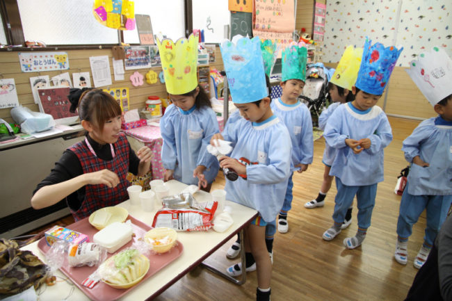 年長組は、幼稚園最後のサンドウイッチパーティになりました。一回目、二回目、三回目…さすがに手馴れている?いやいや、やっぱりお母さんの手を借りて~でしょうか。このわずかな経験ですが、お家でお手伝いが出来るよう…
