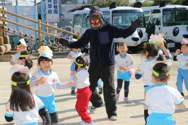豆まきが2回目だったお友達も多かったこともあってか、鬼を怖がりながらも、しっかり豆を投げ、鬼退治、、、でも、やっぱり怖い怖い、、、それもそのはず1年でたった1度だけしか見ない鬼が突然現れたら、、、お友達は、鬼に対して自ず…